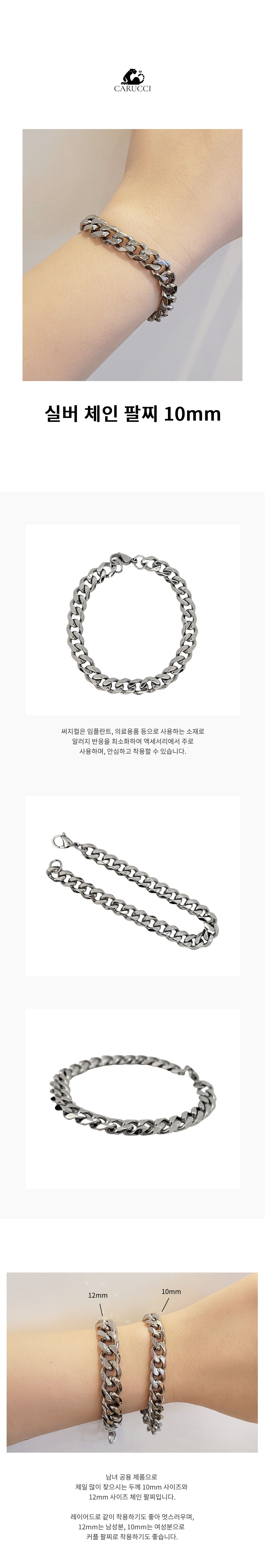 실버 체인 써지컬 10mm 팔찌 BC30