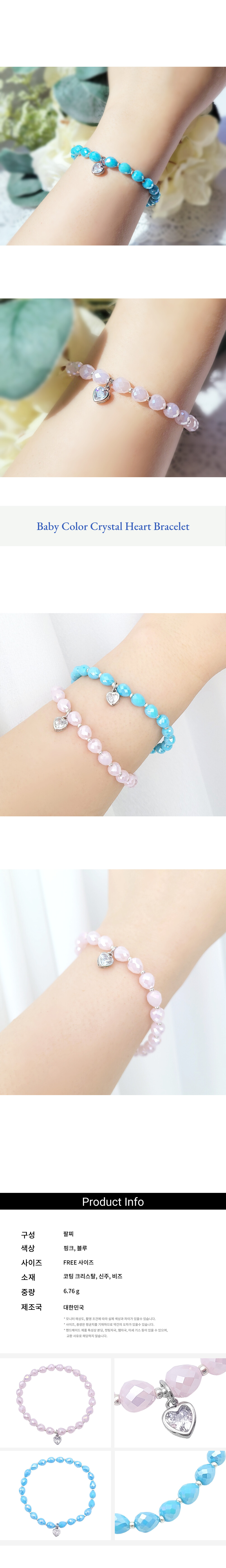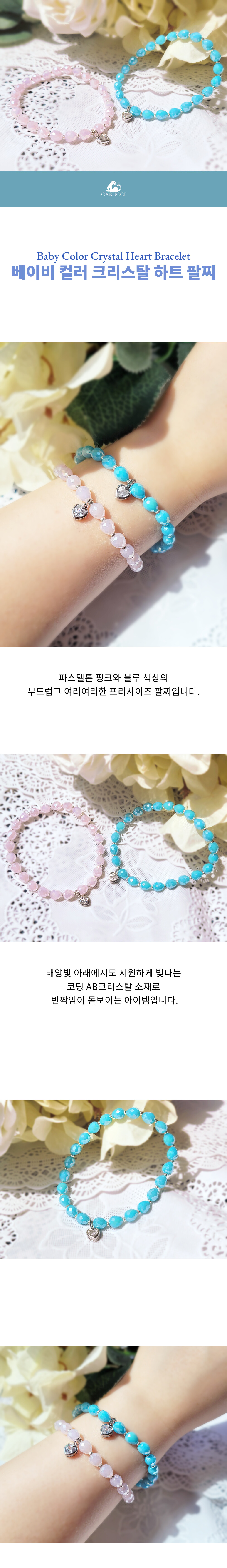베이비 컬러 크리스탈 하트 핑크 블루 프리사이즈 팔찌 BC37