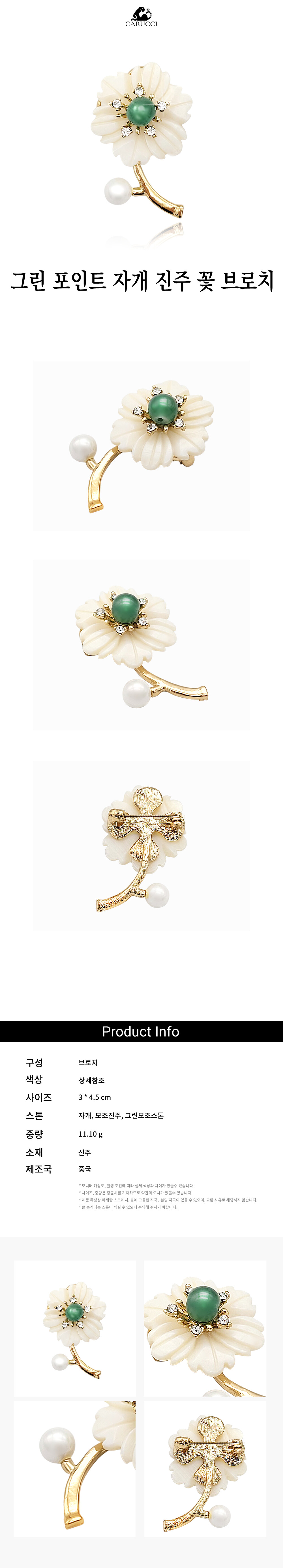 그린 포인트 자개 진주 꽃 브로치 BH042