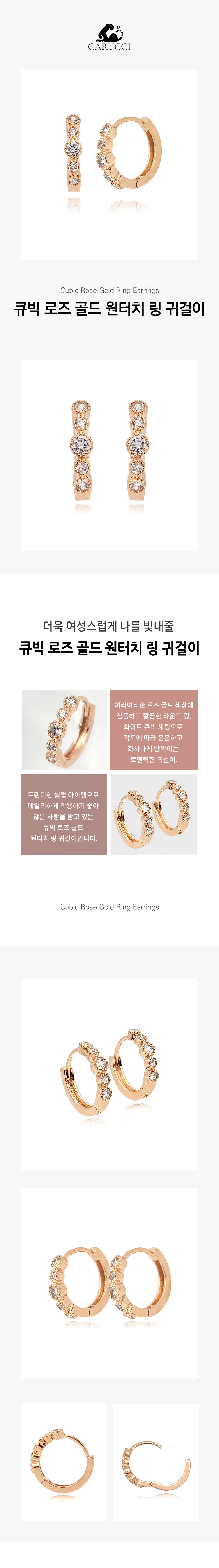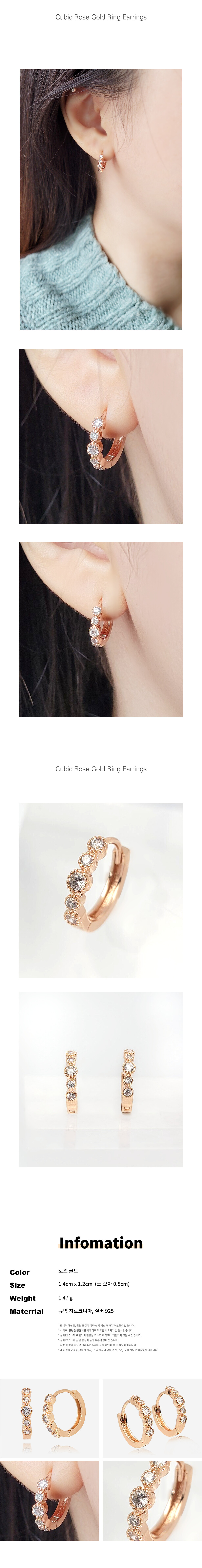 [Silver92.5] 큐빅 로즈 골드 원터치 링 귀걸이