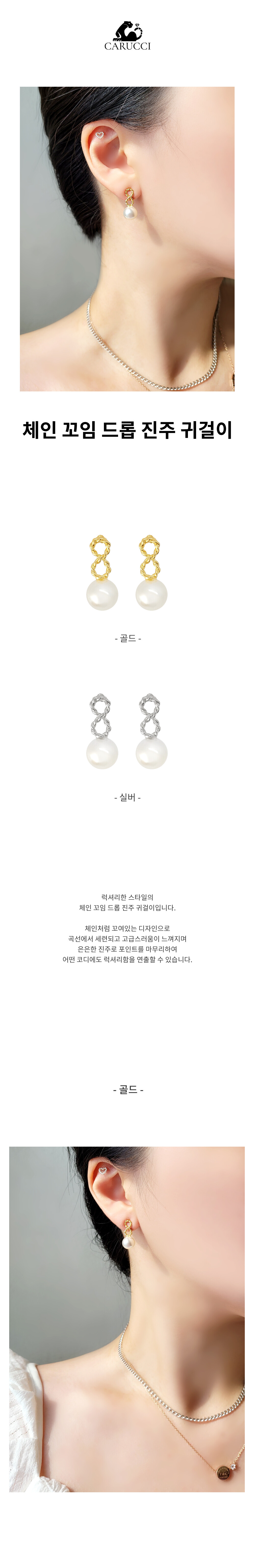 체인 꼬임 드롭 진주 귀걸이 ERK102