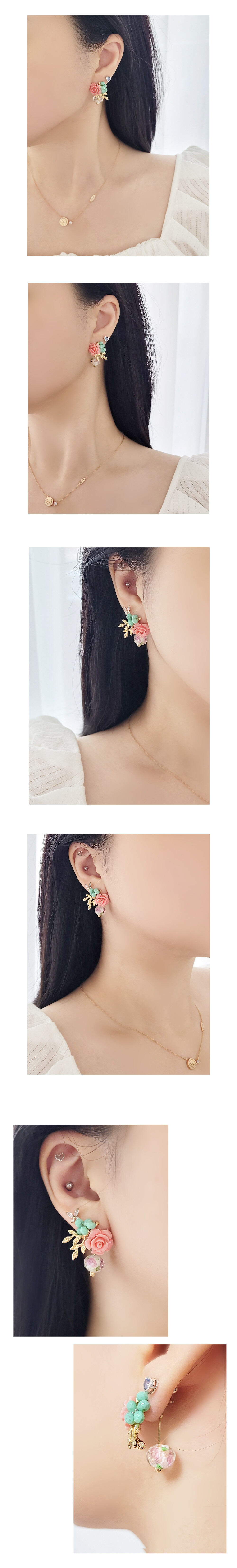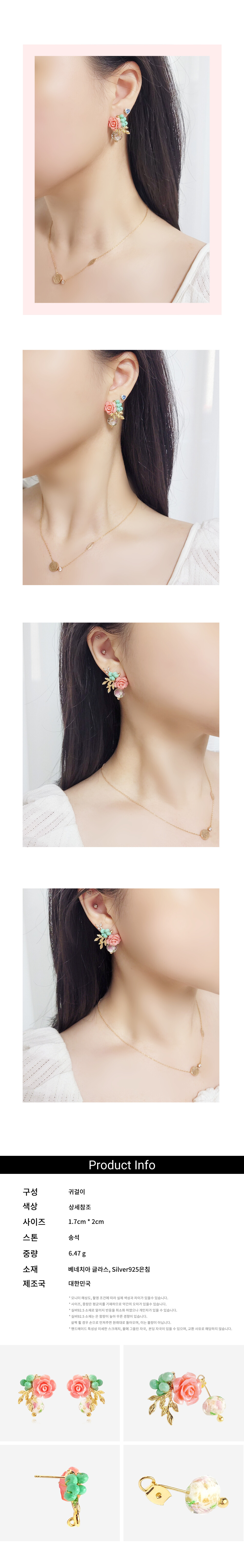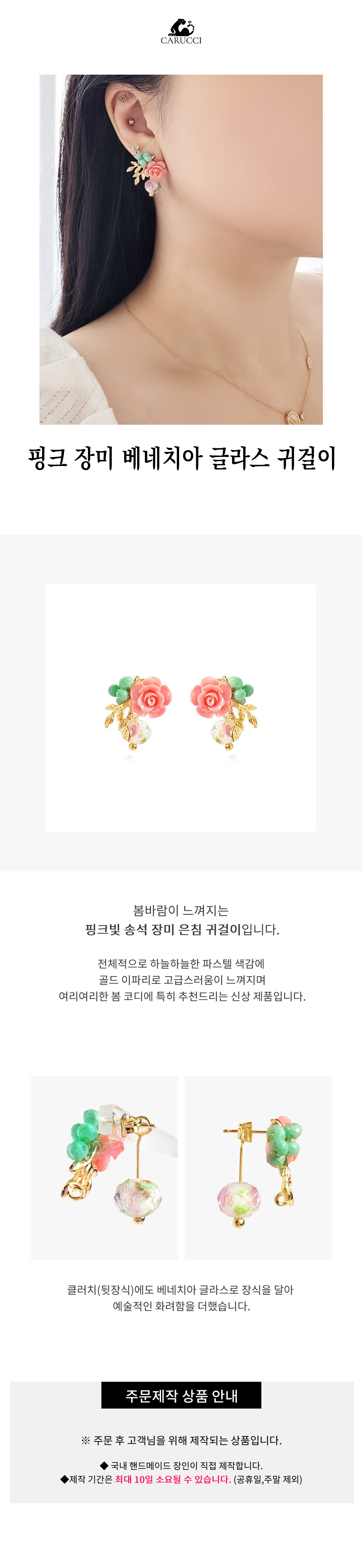 (silver925)핑크 장미 베네치아 글라스 은침 귀걸이 ERK112 봄신상 핸드메이드