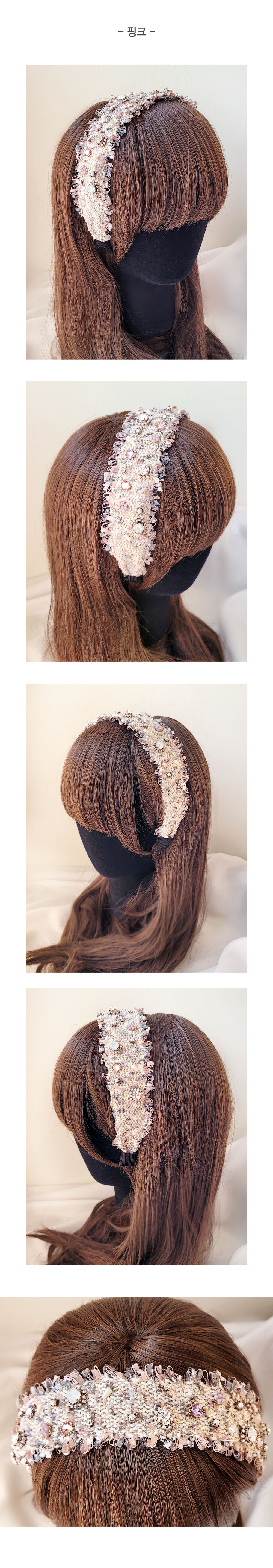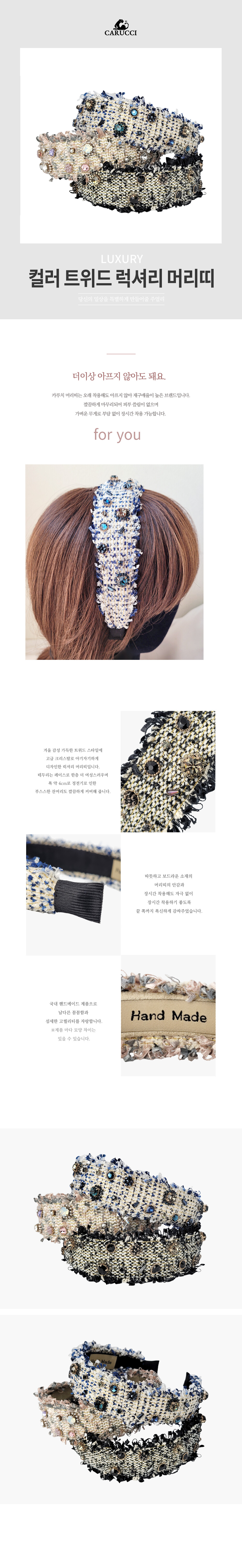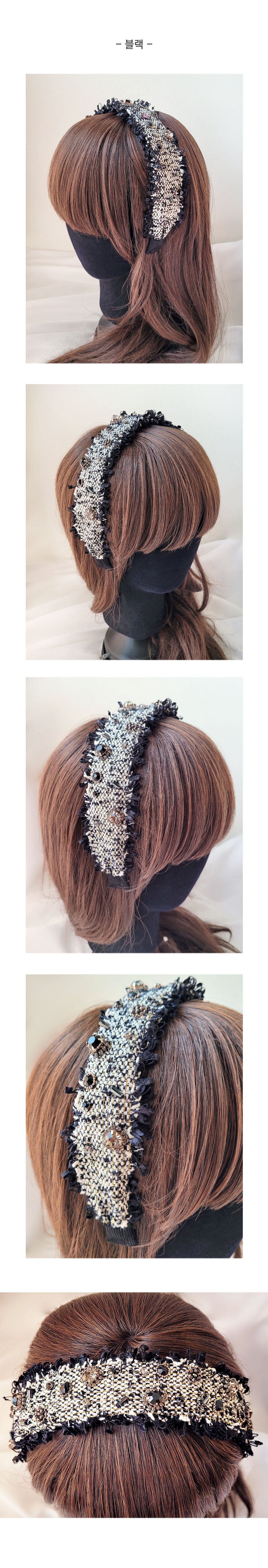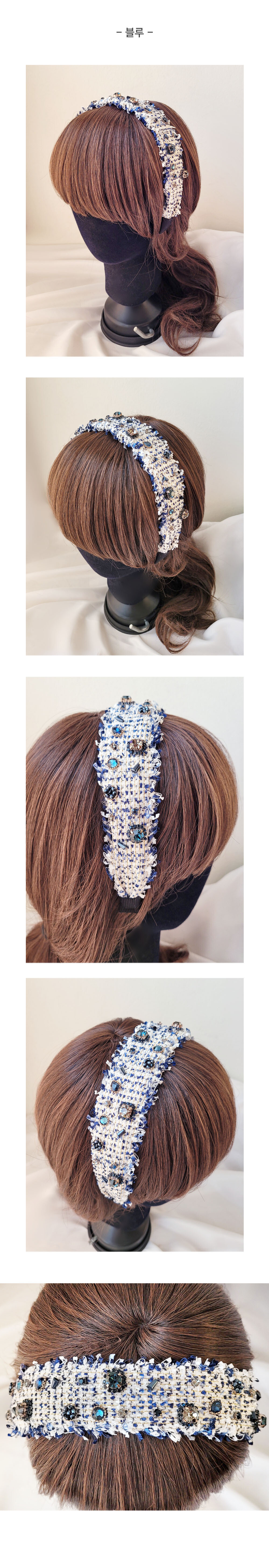 컬러 트위드 크리스탈 럭셔리 넓은 머리띠 HB32