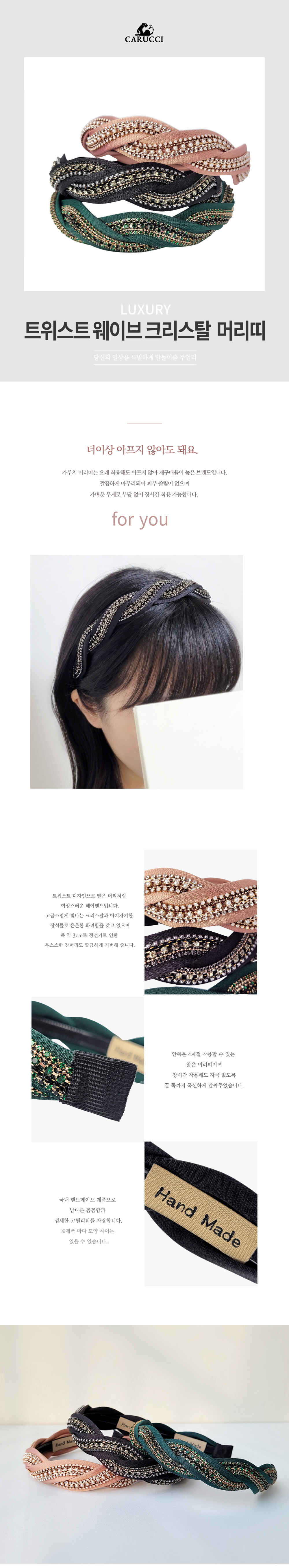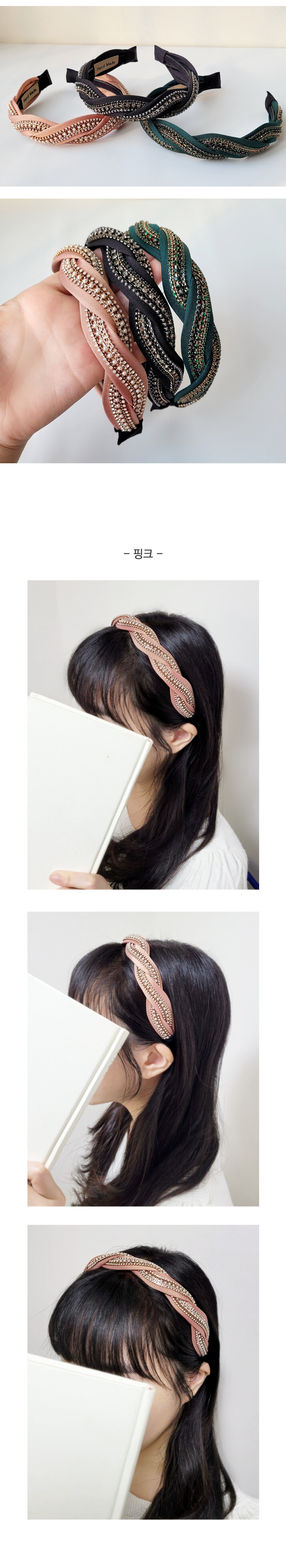 트위스트 웨이브 크리스탈 넓은 머리띠 HB34