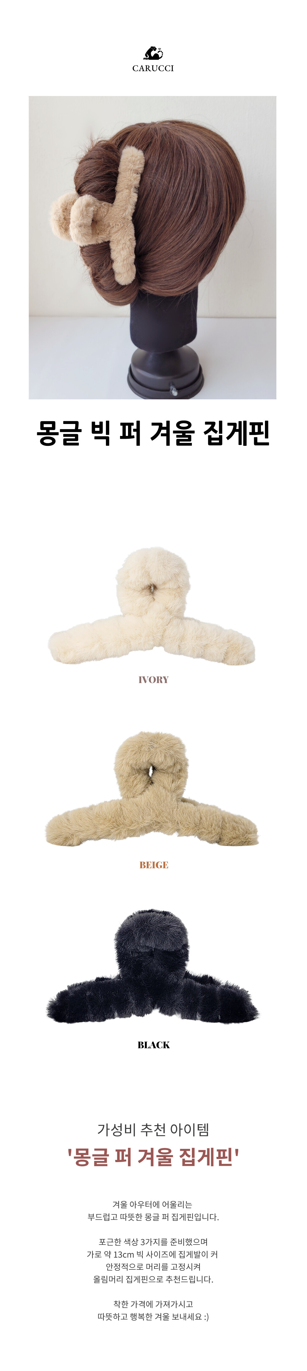 몽글 빅 퍼 올림머리 겨울 집게핀 HP122