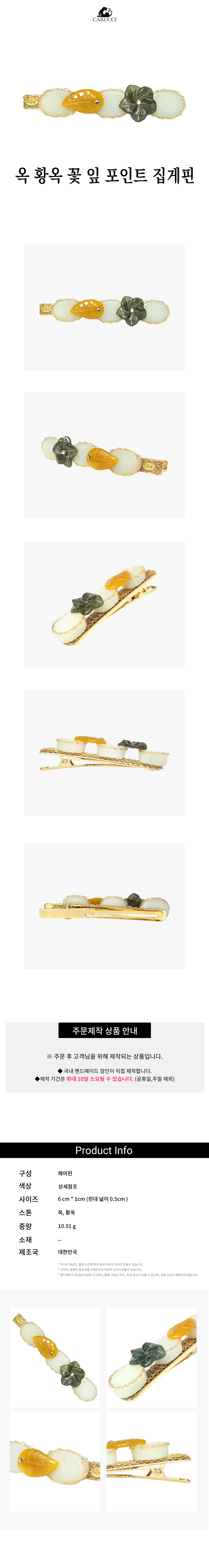 옥 황옥 꽃 잎 6cm 포인트 고급 집게핀 헤어핀 머리핀 HP137