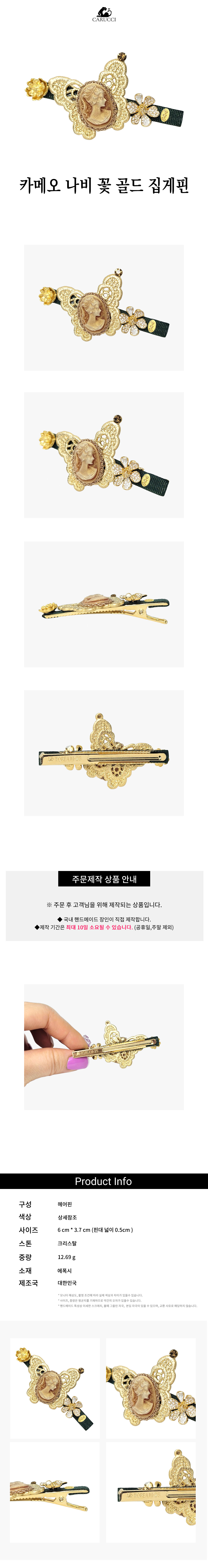 카메오 나비 꽃 골드 6cm 포인트 집게핀 고급 헤어핀 머리핀 HP138