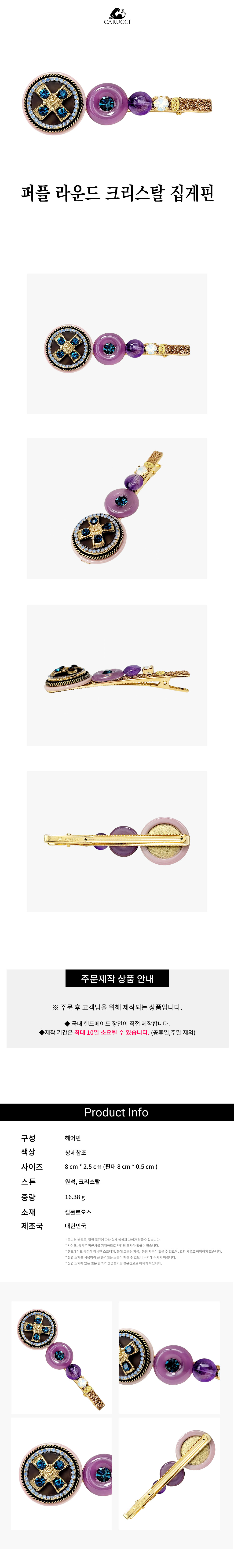 퍼플 라운드 크리스탈 원석 집게핀 고급 헤어핀 머리핀 HP142