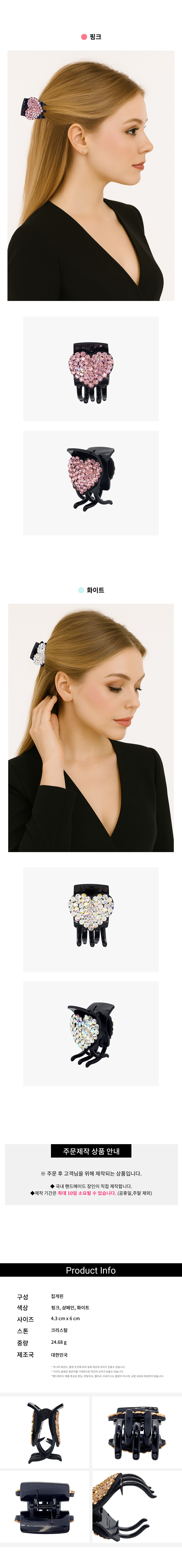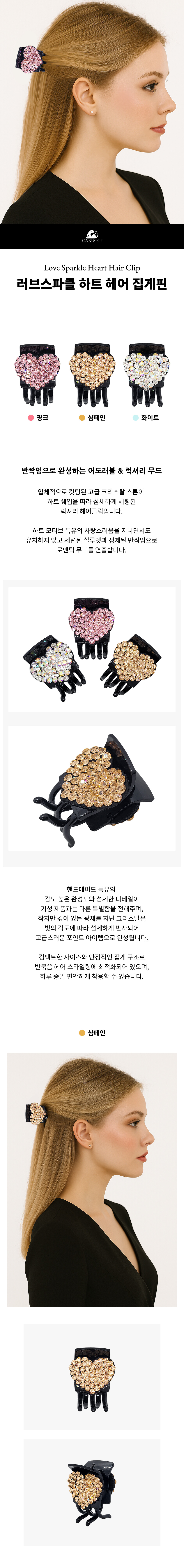 러브스파클 하트 헤어 집게핀 HP160 럭셔리 크리스탈 반묶음 집게핀 핸드메이드