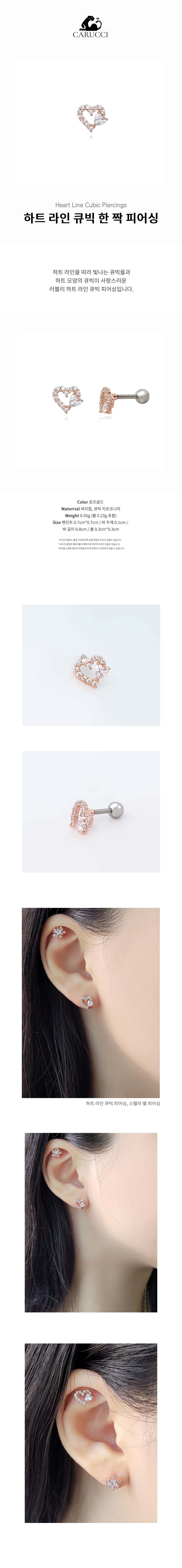 하트 라인 큐빅 한 짝 피어싱 PR005