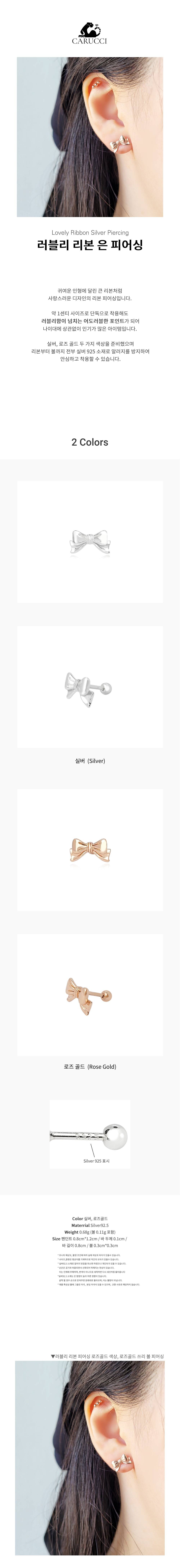 (Silver925)러블리 리본 은 피어싱 PR026