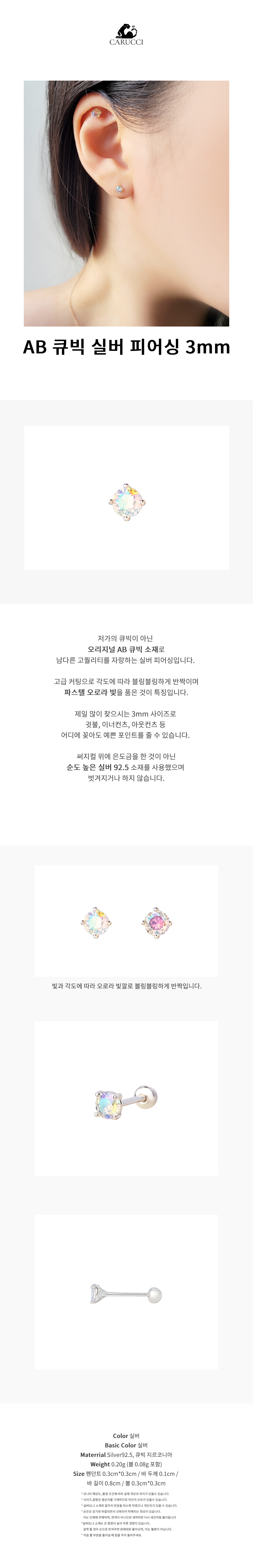 (Silver925)AB 큐빅 실버 3mm 피어싱 PR029