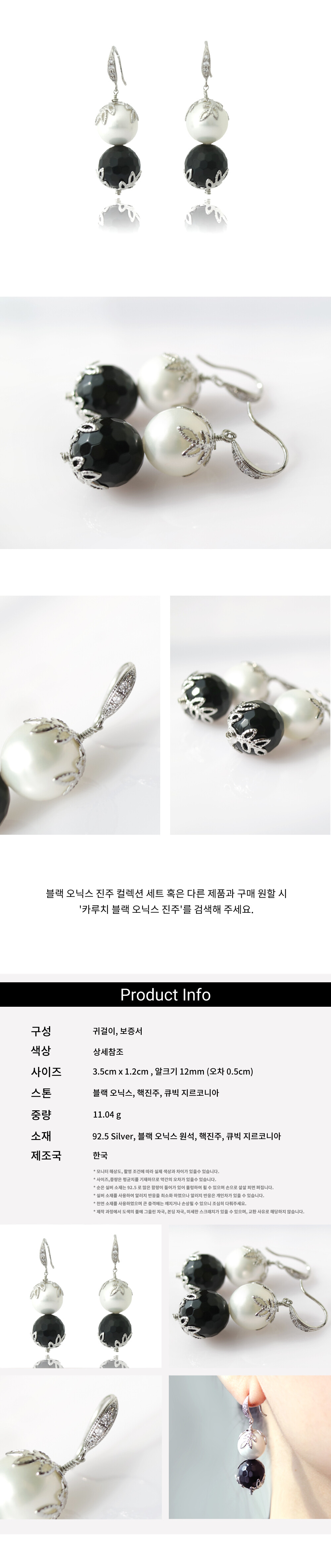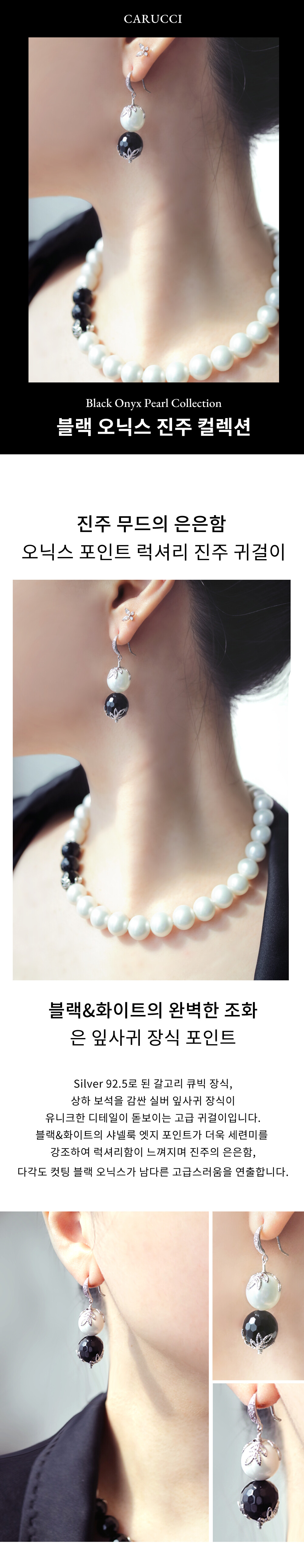 [Silver92.5]오닉스 포인트 럭셔리 진주 귀걸이