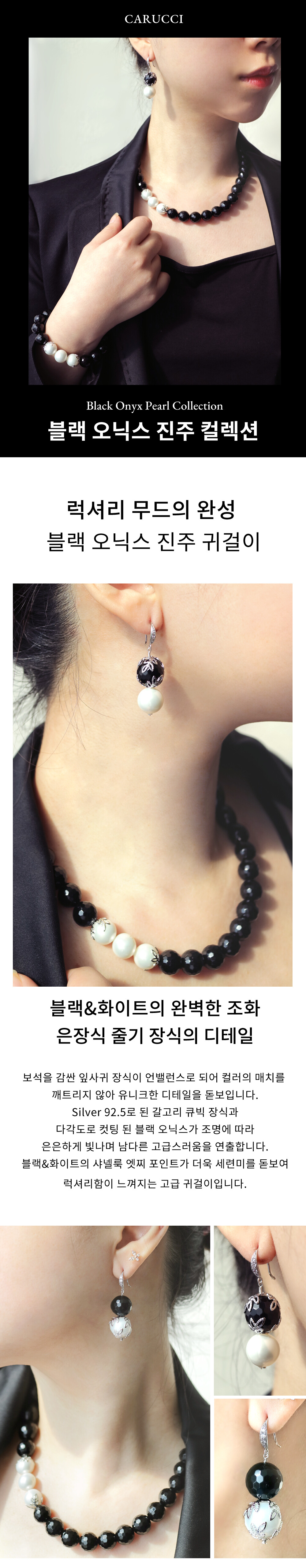 [Silver92.5]블랙 오닉스 진주 귀걸이