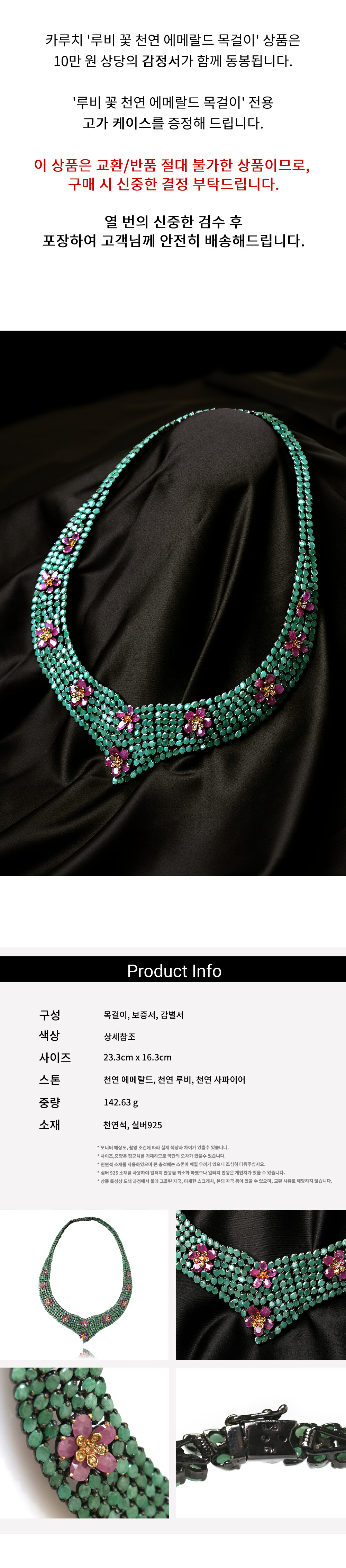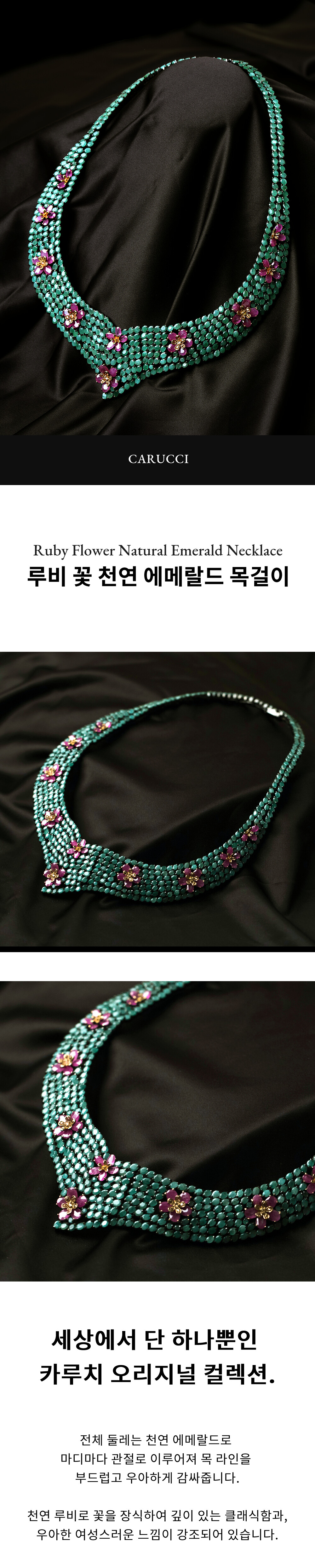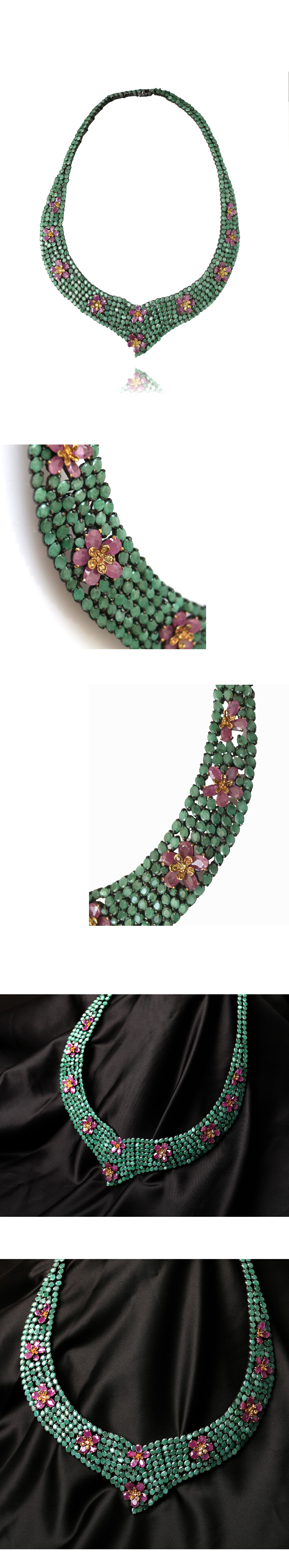 [Silver92.5] 루비 꽃 천연 에메랄드 목걸이