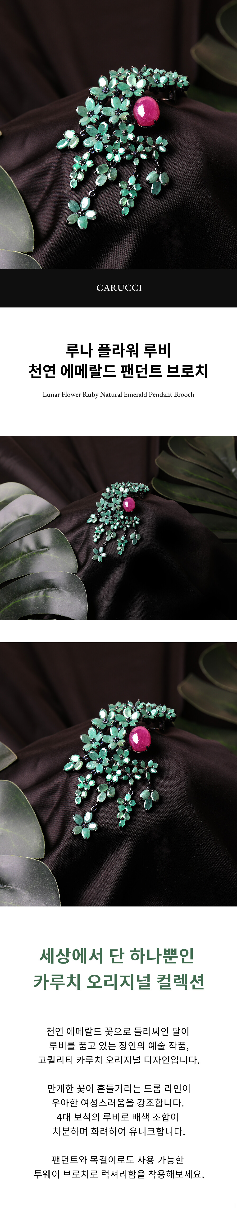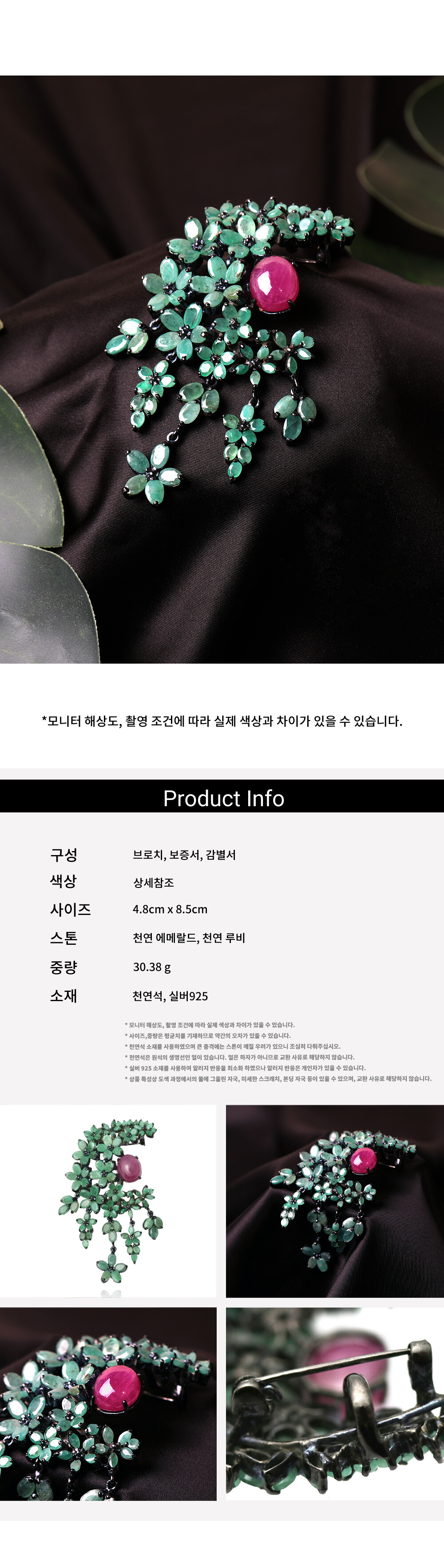루나 플라워 루비 천연 에메랄드 팬던트 브로치